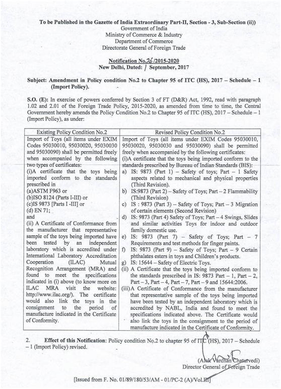 近日,印度工貿(mào)部(Ministry Of Commerce and Industry)對國外玩具產(chǎn)品出口印度新出臺一則新規(guī):Notification No.26/2015-2020,目前對我國出口印度玩具業(yè)務(wù)已造成嚴(yán)重影響;