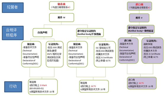 在合規(guī)評(píng)定程序中,不同的經(jīng)濟(jì)運(yùn)行體(制造商、進(jìn)口商)涉及不同流程: