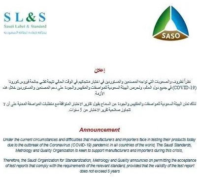 沙特標(biāo)準(zhǔn)計(jì)量和質(zhì)量組織(SASO)頒布,受疫情影響,對(duì)于所有需要能效標(biāo)簽的產(chǎn)品,其能效測(cè)試報(bào)告的有效期調(diào)整至5年。