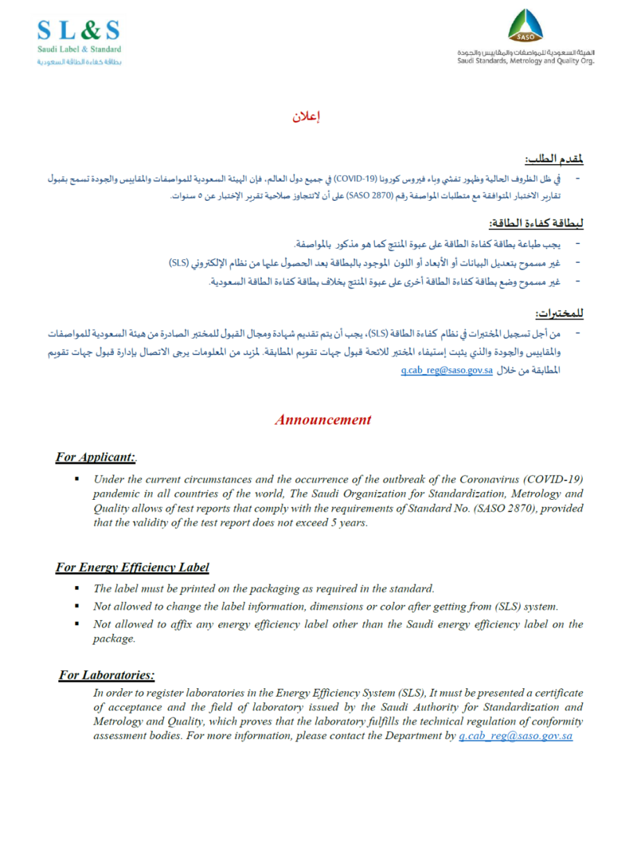 近日,沙特阿拉伯標(biāo)準(zhǔn)組織 SASO(Saudi Standards, Metrology and Quality Organization)發(fā)布了關(guān)于照明產(chǎn)品的能效功能及標(biāo)識(shí)要求的更新通知。