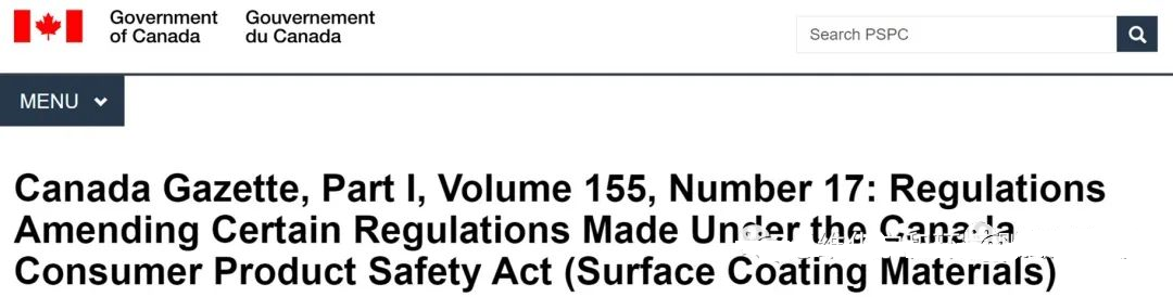 近日,加拿大衛(wèi)生部在官方公報(bào)第一部分(Canada Gazette,Part I)發(fā)布加拿大消費(fèi)品安全法案(CCPSA)管控下的表面涂層材料法規(guī)(Surface Coating Materials Regulations)更新提案,公眾評(píng)議期70天,于2021年7月3日結(jié)束。