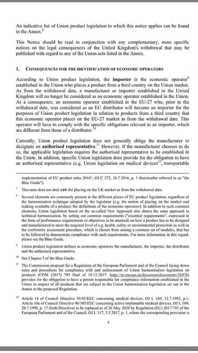 考慮到英國退歐后,將由歐盟的成員國變化為歐盟的第三國。所有在英國境內(nèi)的企業(yè)將失去經(jīng)濟(jì)作業(yè)者的身份,所有在歐盟境內(nèi)銷售英國公司提供的產(chǎn)品的企業(yè)將由經(jīng)銷商變?yōu)檫M(jìn)口商。