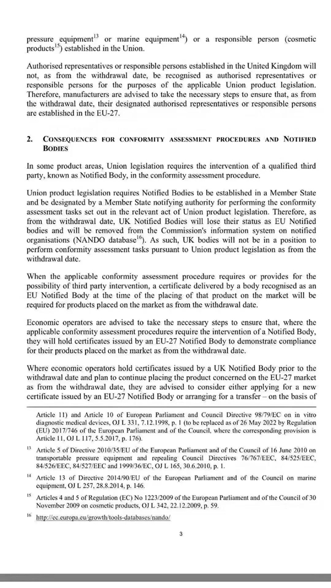 通告明確說明了,在2019330日之后,所有英國的公告機(jī)構(gòu)將失去公告機(jī)構(gòu)的資質(zhì)。