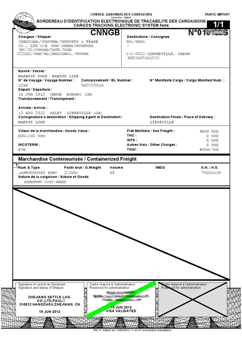 所有發(fā)往加蓬(Gabon)的貨物均需申請辦理BIC/CRN,否則將導(dǎo)致船公司無法簽發(fā)提單以及目的港無法清關(guān)。加蓬BIC貨物跟蹤單也叫加蓬(Gabon)CRN貨物跟蹤單。