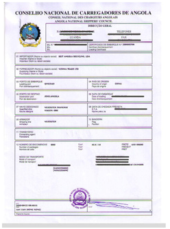 根據(jù)安哥拉的法規(guī),每票B/L運(yùn)至安哥拉(Angola)的貨物,都必須在裝貨港提供C.N.C.A.出具的船運(yùn)證書。安哥拉(Angola)CNCA船運(yùn)證書是CONSELHO NACIONAL DE CARREGADORES DE ANGOLA的縮寫。